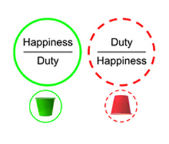 Longer Answer: Consider the following example from the Christian Eternalism book where a friend of mine related a story that effectively illustrates the difference between duty ethics compared to value ethics. He said: "One Sunday morning, I got a call from the bishopric asking me to organize a snow removal team from the Elders Quorum to clean the church sidewalks before the services started. We had previously planned a snow removal group of men to be on-call with the directive to only come if they saw there was snow to be removed. Earlier that morning I looked outside and didn't see any snow on the sidewalks, so I (and everyone else) assumed there was nothing to do. However, there was a significant layer of ice on the sidewalks that everyone had missed. I wasn't copied on the list of people from the original snow removal team, so I couldn't call them. There was little time to form a new snow removal group, since the other ward's members who shared the building with us would soon begin arriving for the first meeting in the building at 9am. So, I chose to just go do the job by myself. My attitude was poor as I performed my duty alone. I grumbled as I shoveled the first few dozen feet of sidewalk. I then turned the corner and saw members of the other ward's leadership out shoveling as well. I knew these guys from when I had previously met with them as the high councilor assigned to their ward. As the members from this other ward who shared the building with us began arriving for their meetings, I happily visited with many of them as they entered the meeting house. Because I knew them and liked them, I was happy to help them safely reach their meetings without slipping and hurting themselves. Once I saw my task as taking care of people whom I knew and liked, my attitude immediately changed for the better."